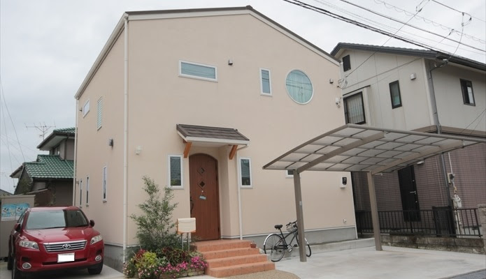 丸窓が印象的な外観に見とれて、チャイムを押すまでに少し時間を掛けてしまった私です。パイン材の床と白い漆喰壁の一階は明るく開放的でした。家事動線が考えられた効率的な間取りに遊び心がプラスされた家は、丁寧に選ばれた色や壁紙、素材などが調和していました。帰り際、お子さんのかわいらしいご挨拶が交わされた光景が、更に辺りを明るく包んでいたと思います。