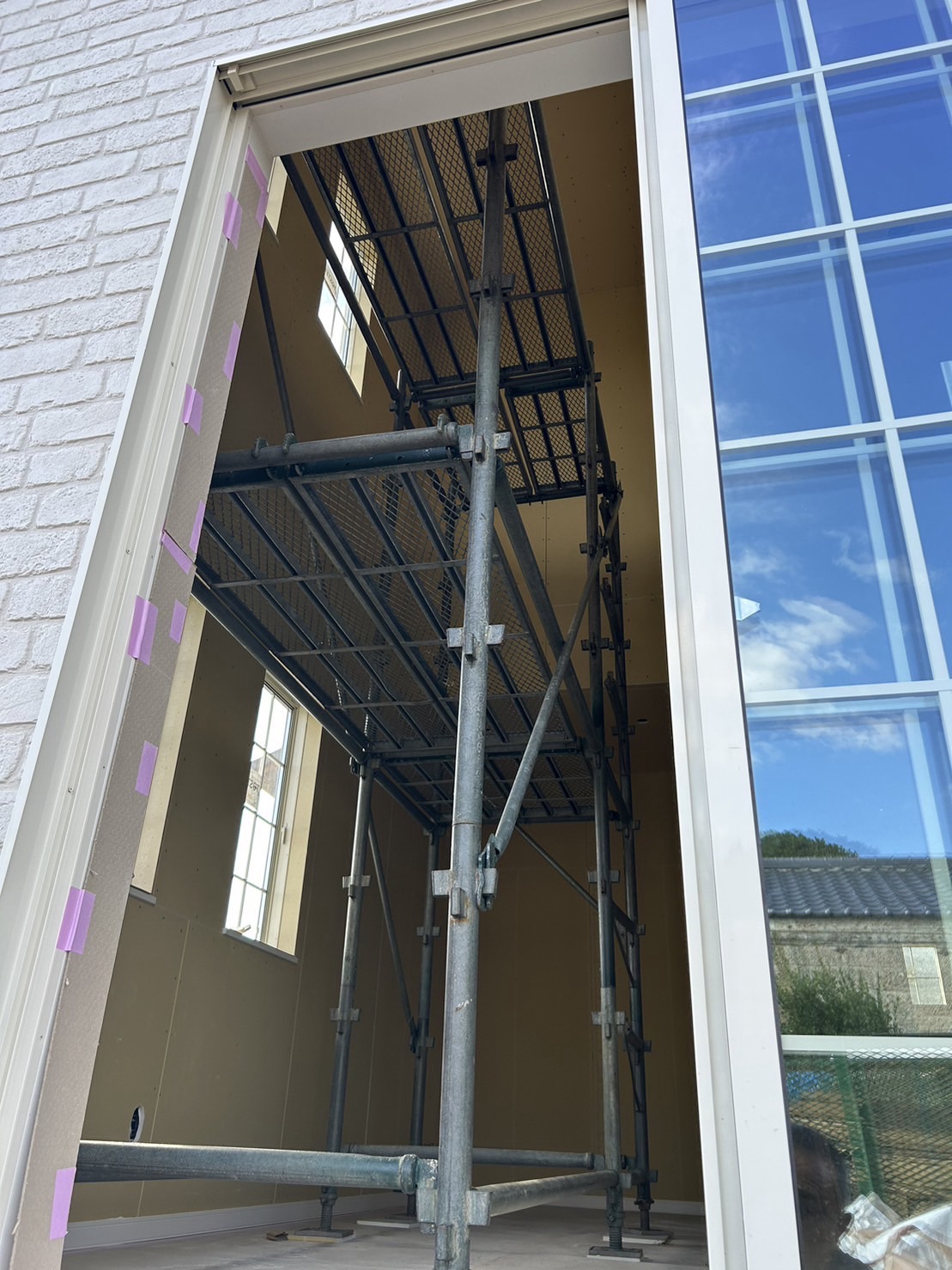2025.09.30吹抜足場 Tweet Pocket 鹿沼市Y様邸 吹抜け工事のため内部足場を組みました。吹抜けって何もないから安くなるんでしょう?って言われる方たまにいらっしゃいます。 施工大変ですだって手が届かないんですから。その為の足場なんですがまあまあお金かかりますね 石川