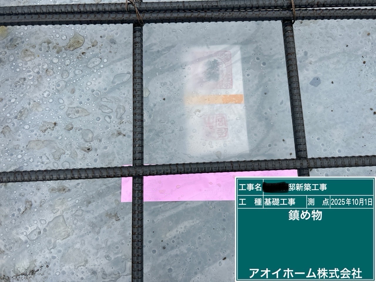 2025.10.01鎮め物 Tweet Pocket 宇都宮市N様邸 基礎ベース下に鎮め物を配置しました。 地鎮祭の際に頂いた工事安全、家内安全のお守りになります。 皆様の幸せを大地の神様が見守って頂けます🙏 代表 石川