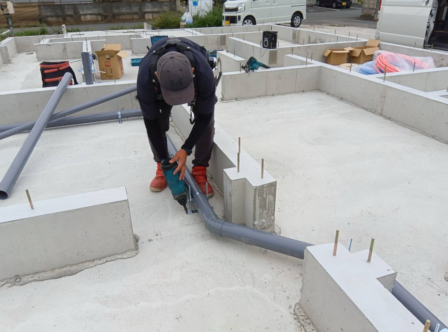 2025.10.16栃木市岩舟町S様邸で先行配管工事でした Tweet Pocket 建て方してしまうと施工しにくい基礎の中。今のうちに給水、給湯、排水管工事をしておきます。維持管理しやすい施工方法となっています 代表 石川