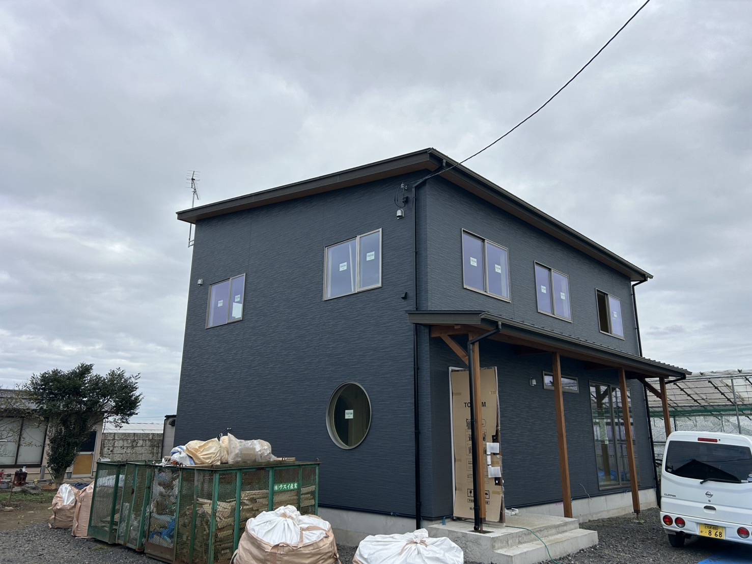 外部足場ばれました。外部工事がスムーズに進みました👏完工は予定通り年内一杯となります。あと少し!