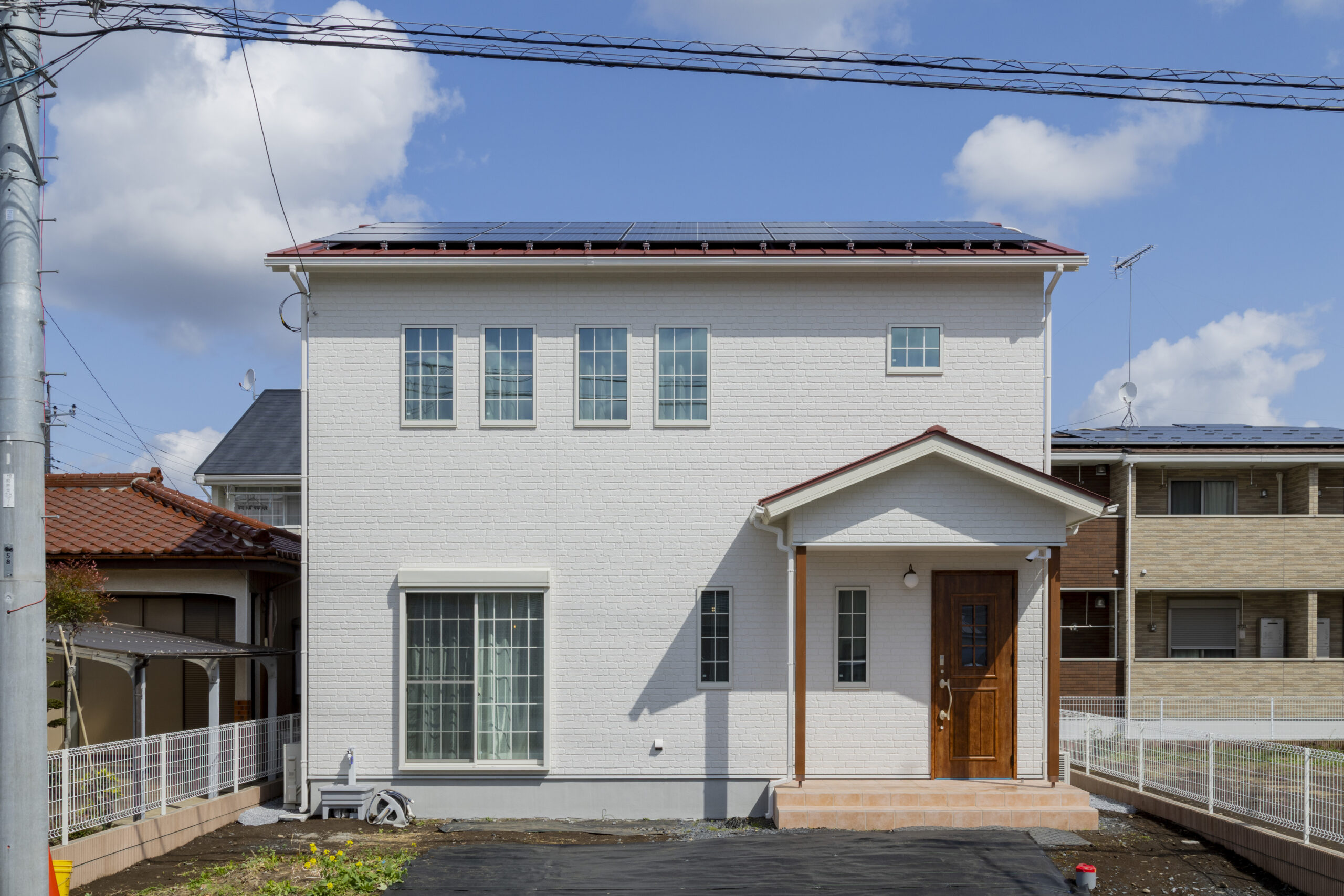 今回ご紹介するのは延床面積36坪、白い外壁に木目の玄関ドアが映える、LIXILのSW工法で高性能なお家(商品名:家族の未来を灯す家)です。